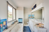 Idéalement située à proximité de la plage de la Gorguette, cette jolie maison d’environ 95 m² offre un cadre de vie paisible et verdoyant à quelques minutes du centre de Sanary-sur-Mer. Édifiée sur un terrain clos et arboré d’environ 400 m², elle se distingue par son atmosphère chaleureuse et ses beaux volumes intérieurs. Au rez-de-chaussée, un espace de vie lumineux réunit salon, salle à manger et cuisine ouverte, s’ouvrant sur le jardin. Ce niveau comprend également une chambre et une salle de bains. À l’étage, un bureau ouvert surplombe le séjour et mène à une suite parentale avec salle de bain, douche et WC, ainsi que deux terrasses privatives avec vue mer. Les extérieurs offrent un agréable jardin arboré, une place de stationnement intérieure ainsi qu’une possibilité de parking supplémentaire à l’extérieur. La propriété dispose également d’une grande cave, idéale pour le stockage ou l’aménagement d’un espace complémentaire. Un bien rare dans un secteur recherché, alliant calme, confort et proximité du littoral.