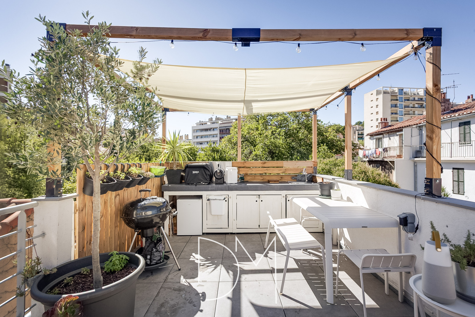 Marseille, dans un quartier prisé du 8ème arrondissement, au calme, venez découvrir cet appartement style loft de 51 m2 et sa superbe terrasse en rooftop de 28 m2. surplombant la ville. Situé dans une petite copropriété, un escalier privatif en rez de chaussée vous amène à l'appartement agencé de plain pied au 1er étage. Il se compose d'une belle pièce de vie lumineuse avec une cuisine équipée ouverte sur salon et coin repas, d'une chambre spacieuse de 13.5 m2 et sa salle d'eau attenante.La climatisation est réversible et un poêle à bois moderne vient agrémenter le confort de l'appartement. L'escalier du salon vous amène sur une magnifique terrasse sur le toit entièrement aménagée avec cuisine d'été et vue entièrement dégagée. Produit unique sur le marché.