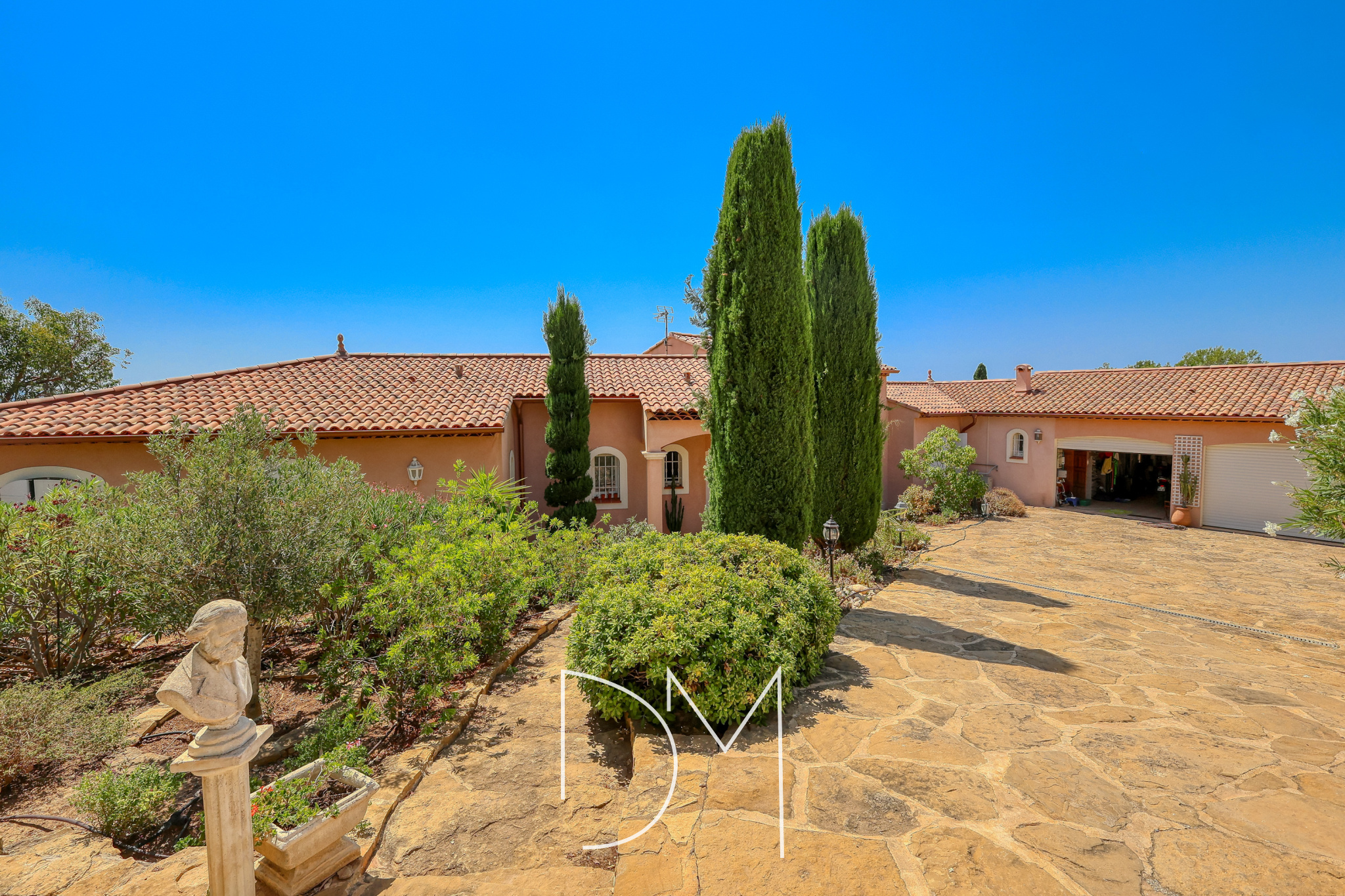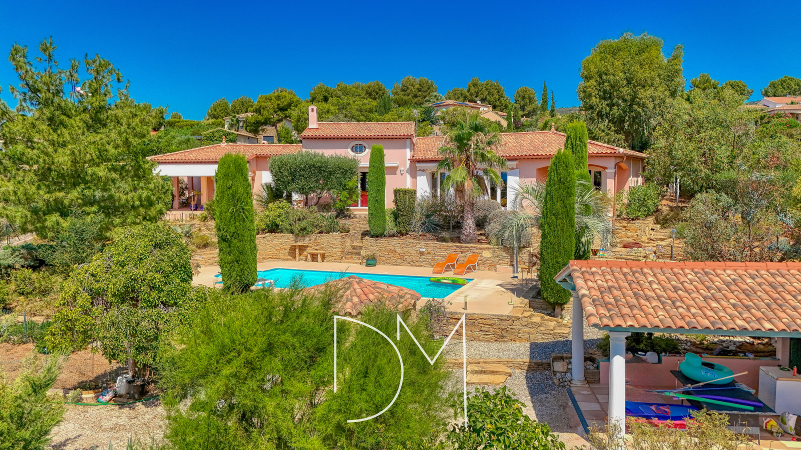 Au cœur des hauteurs prisées de La Cadière-d’Azur, dans un environnement calme au bout d’une impasse, cette villa offre un cadre de vie rare alliant sérénité et raffinement. Édifiée en 2002 sur un terrain paysager de 2 000 m², irrigué par le canal de Provence et agrémenté d’essences méditerranéennes, la propriété développe 130 m² de plain-pied. Dès l’entrée, un vaste séjour baigné de lumière séduit par son plafond cathédrale de cinq mètres et sa cheminée avec insert. Attenante, une cuisine indépendante entièrement équipée s’ouvre sur une grande terrasse couverte, véritable belvédère offrant une vue mer à couper le souffle. L’espace nuit, situé dans l’aile gauche, accueille quatre chambres confortables, une salle d’eau et une salle de bains. À l’extérieur, tout invite à la détente : une piscine au sel entourée de larges terrasses, une authentique borie en pierre, plusieurs cabanons de rangement et un double garage de 47 m² complètent les prestations de cette demeure. Un bien d’exception, à l’image de la douceur de vivre provençale.